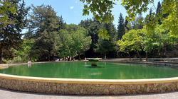 We rijden een klein stukje met de auto om er de zeven bronnen vallei te bezoeken. Dit is een natuurgebied in het binnenland van Rodos. De groene kloof heeft zeven bronnen en stromende beekjes, die bijna nooit droog staan. Samen vormen de stroompjes een meertje . Je kan er prachtig wandelen. Om de wandeling spannend te maken kan je door een tunneltje het meertje bereiken Het is een donkere stenen tunnel, waar enkelhoog water doorheen stroomt. De tunnel is erg smal, zo'n 75 cm breed en 1 m 70 hoog en ongeveer tweehonderd meter lang
